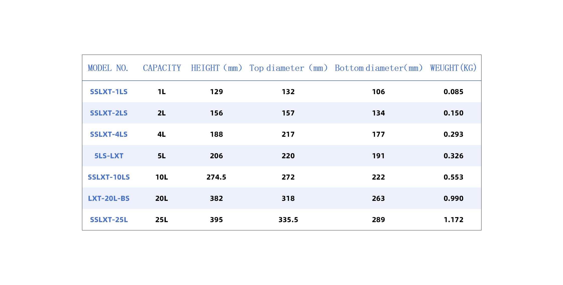 From 1 liter (0.3 gallon) to 25 liter (6.6 gallons)